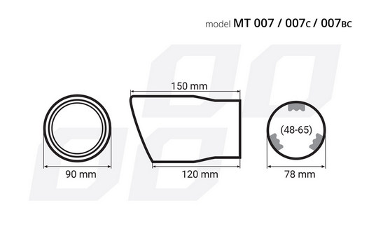 Koncovka výfuku, chrómová z nehrdzavej ocele. Vnútorný montážny rozmer: 48 - 65 mm
